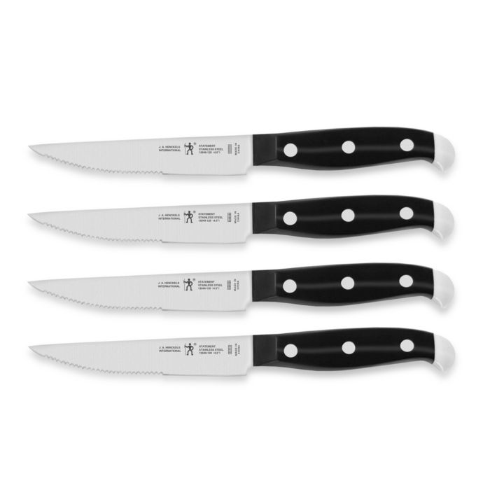 How to choose the best set of steak knives an inside look at the serrated vs. non serrated steak knife debate and which really is the better .9 Top Rated Steak Knives Reviewed Bellemain Wusthof 6 piece Classic DALSTRONG Gladiator Series Chicago Cutlery #B144/1104670..This set of 8 serrated, dishwasher safe steak knives features contoured handles and stainless steel blades. These black blade and handled knives provide a .Find the Top Steak Knife Sets with the MSN Buying Guides >> Compare Steak Knives Sets. The 10 Best Steak Knives Sets. 3,125 Reviews. Knife Sets. The 10 .How we tested. When we learned that our favorite steak knife set, the Victorinox Swiss Army 6Piece Rosewood Steak Set, increased in price from about $80 to .The J.A. Henckels International Stainless Steel 8Piece Steak Knife Set isn't just for steaks. It's for any toughtocut food that requires a serrated .The best knife sets play a major role in your food preparation regime, and you should own the correct set to match your needs.These knives will provide .Best Steak Knife Set Under $100. On By HappyFoodGeek In Reviews. I'm a participant in the Amazon Services LLC Associates Program, .Best Steak Knives featured in this video 0:28 NO.1. J.A. Henckels International 8Piece Steak Knife Set.When it comes to steak knives, we recommend that you go for stainless steel from a single piece of metal, so it will not break easily. The handle should also offer
